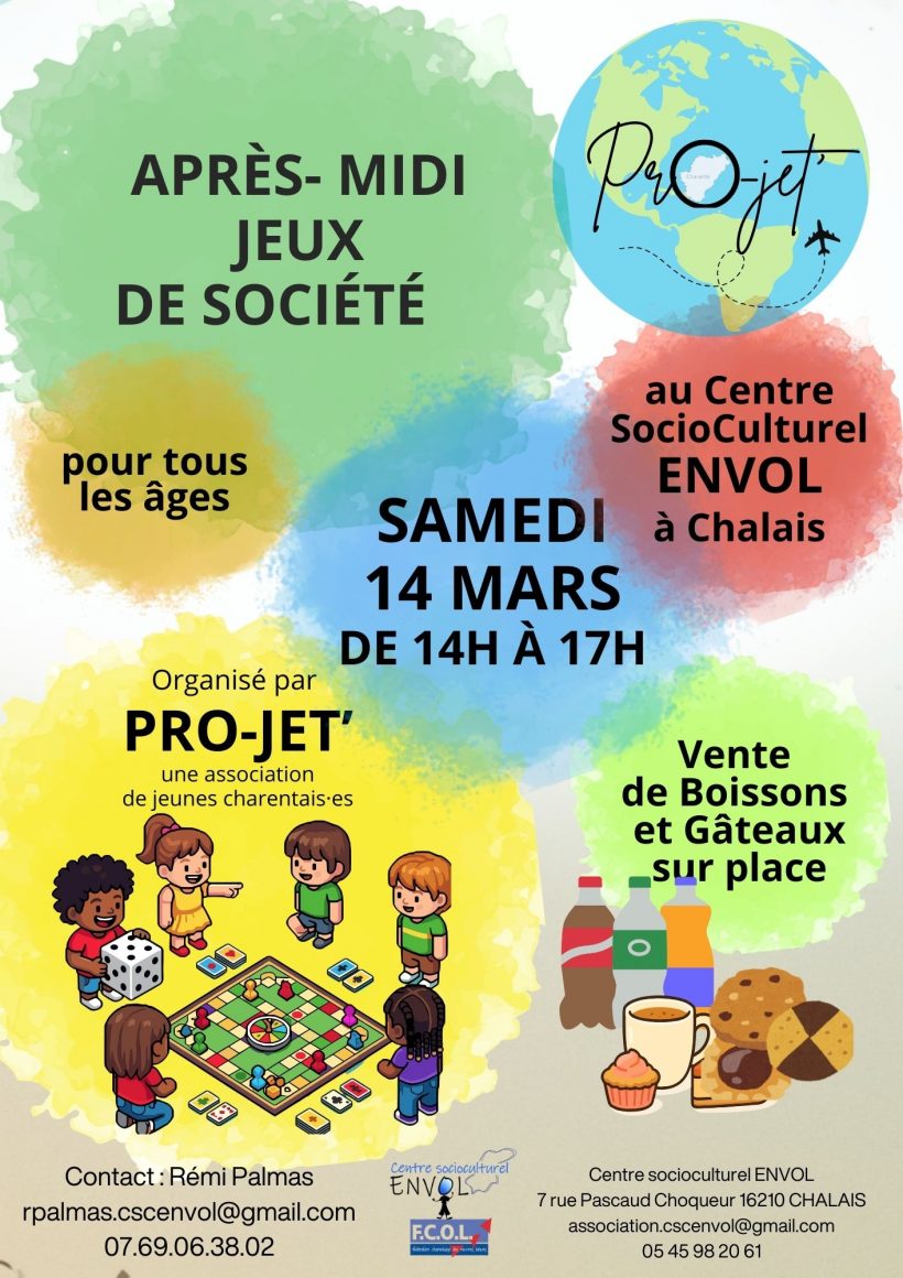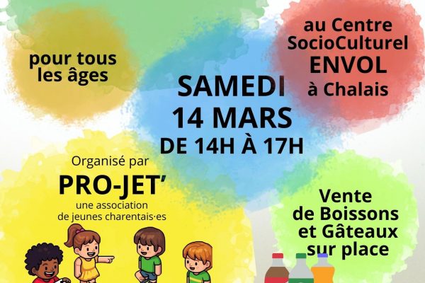 Samedi 14 mars au CSC ENVOL proposé par Pro-jet’ une association de jeunes de notre territoire ! 👍Ils vous attendent avec boissons et gourmandises ! 📣📣😊