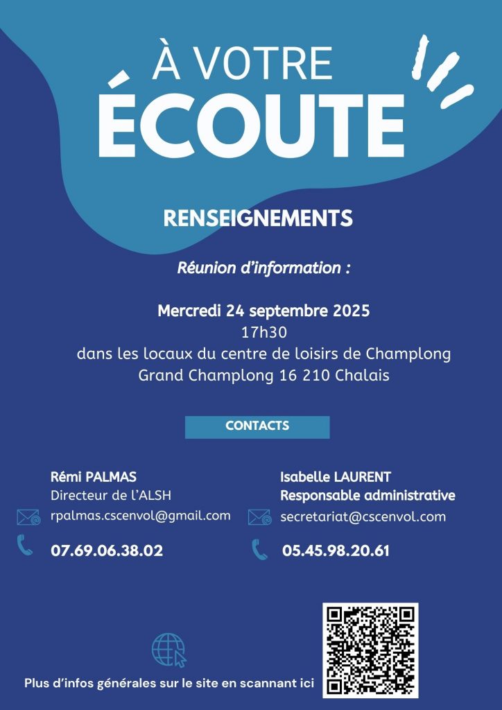 • Mercredi 24 septembre  à 17h30 au centre de loisirs de Champlong.