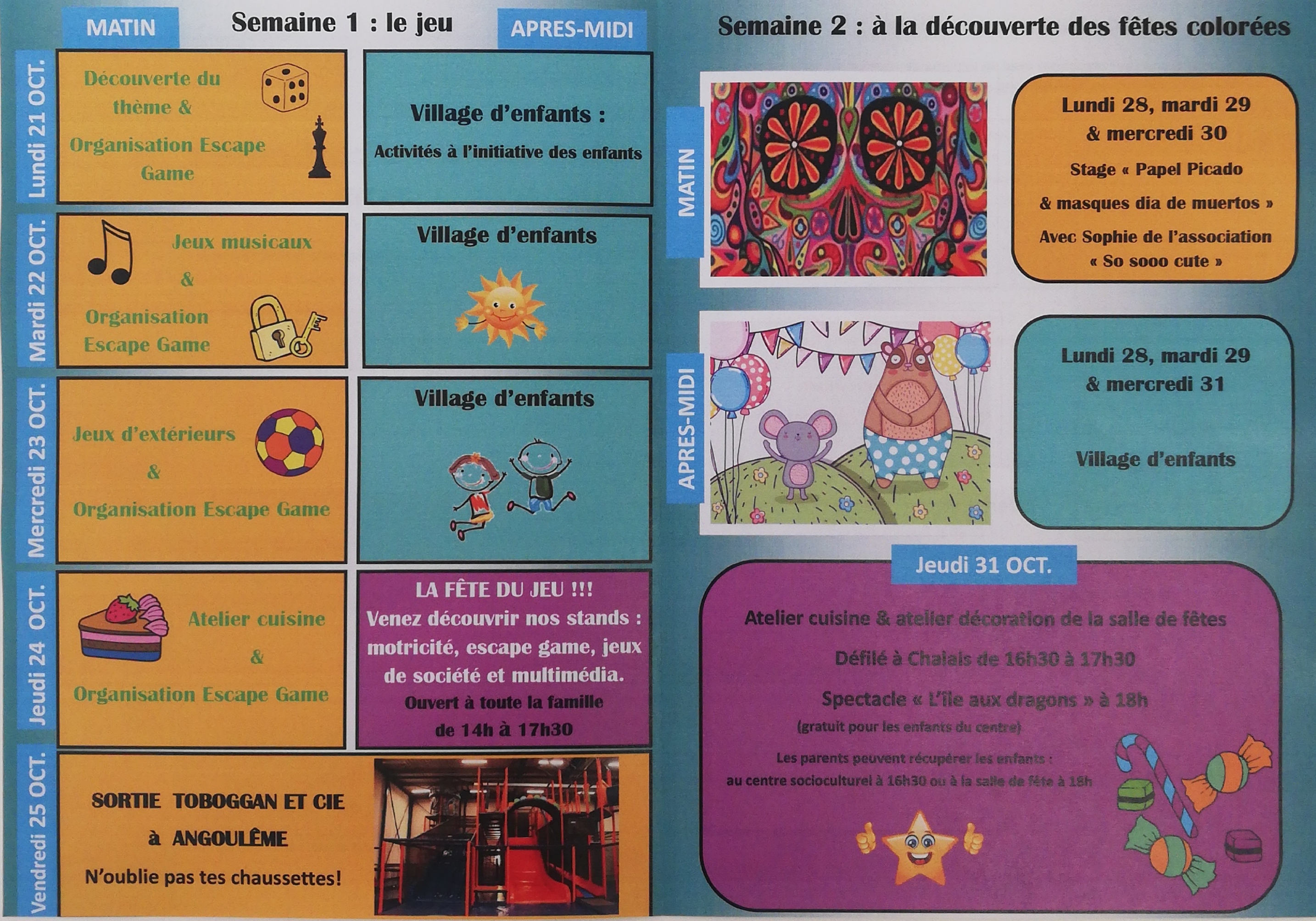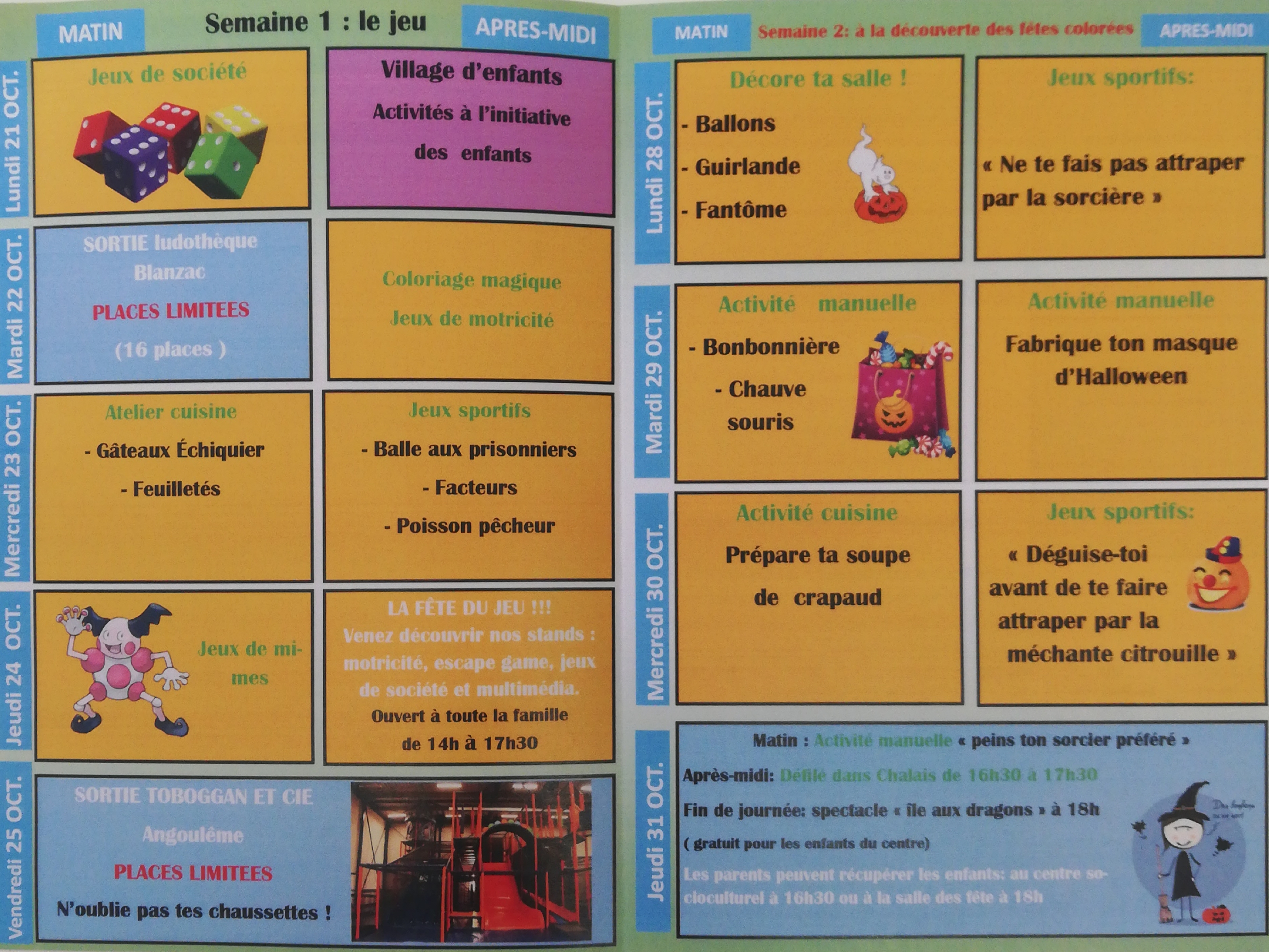 Vos programmes d’activités pour les vacances d’automne sont téléchargeables ainsi que la fiche de réservation.